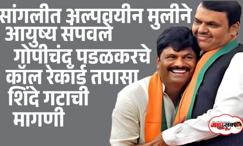 • सांगलीत अल्पवयीन मुलीने आयुष्य संपवले;गोपीचंद पडळकर यांचे कॉल रेकॉर्ड तपासा! शिंदे गटाची मागणी