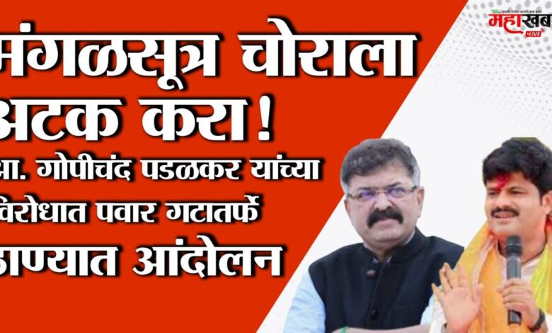 आ. गोपीचंद पडळकर यांच्या विरोधात ठाण्यात आंदोलन! मंगळसूत्र चोराला अटक कराच्या घोषणा
